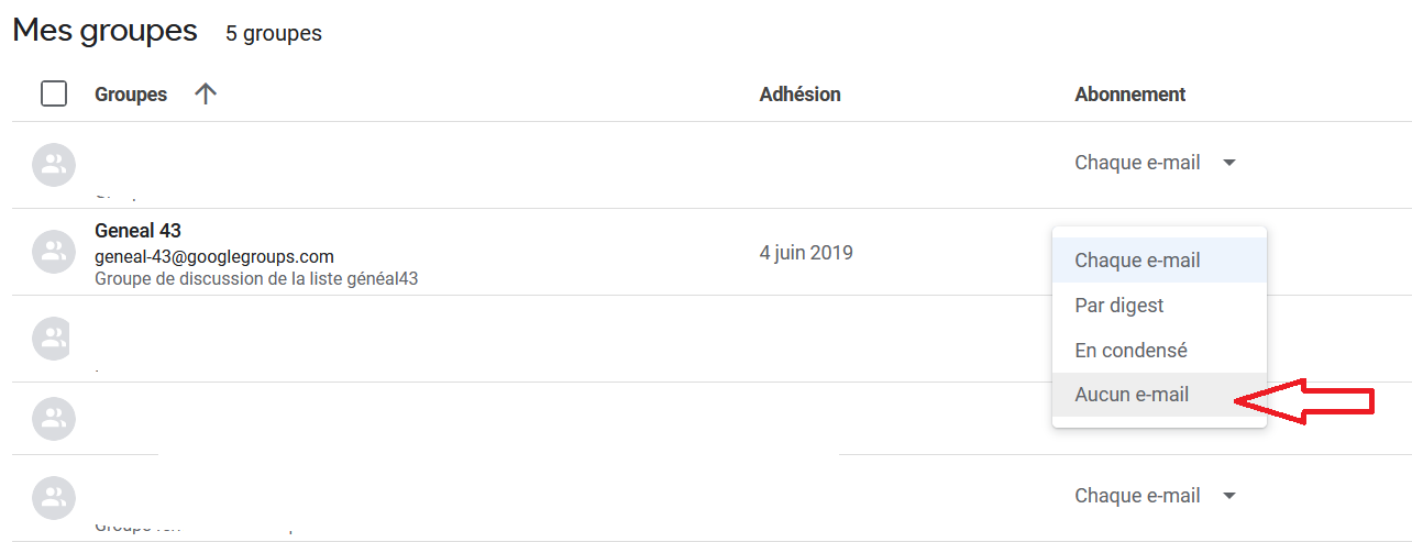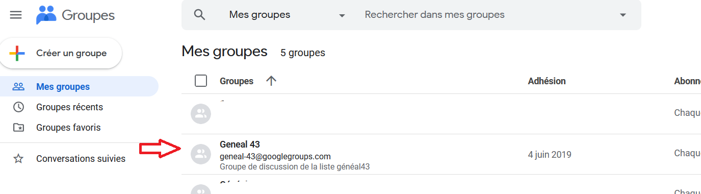 Se rendre sur la liste GoogleGroups